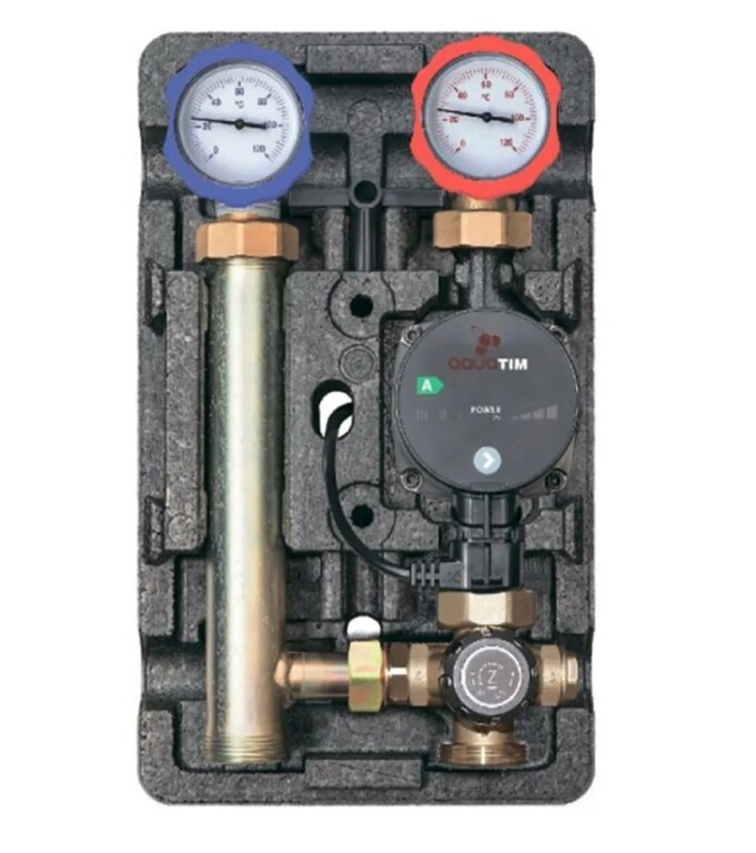 Насосная группа для теплого пола NG-TK-0101 TIM — используется для организации автономной принудительной циркуляции с регулированием и поддержанием заданных параметров воды в контурах с пониженной относительно остальной системы температурой.